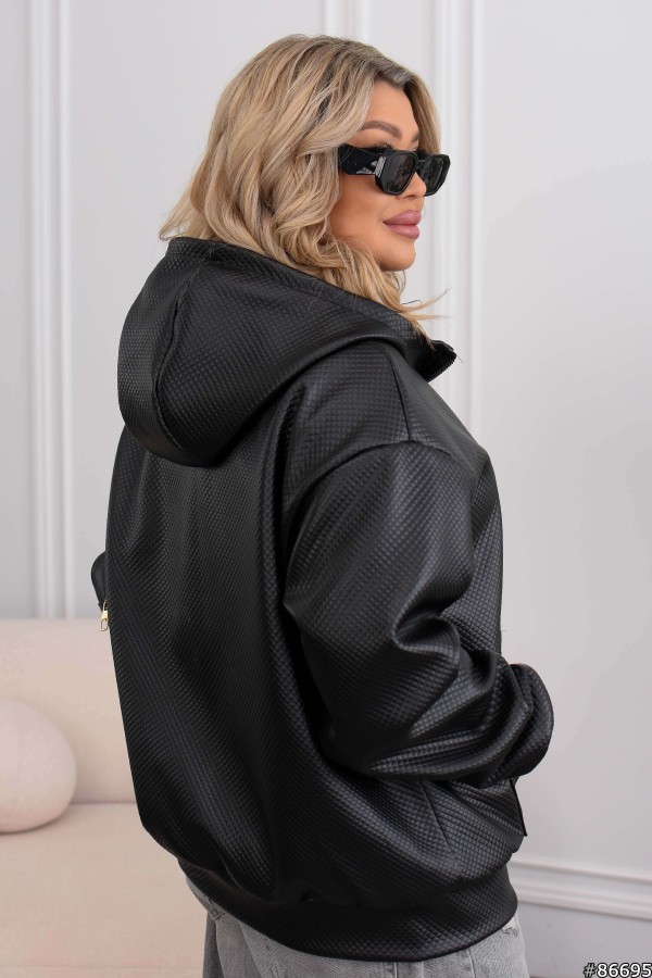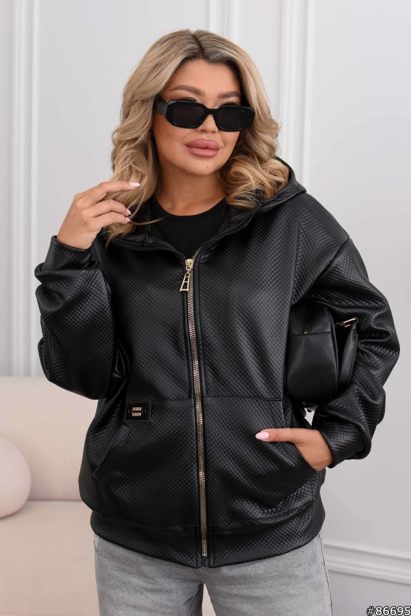 Курткабомбер Еко шкіра на трикотажі колір: Чорний Стьобана екошкіра на трикотажі.Підкладка – нейлон