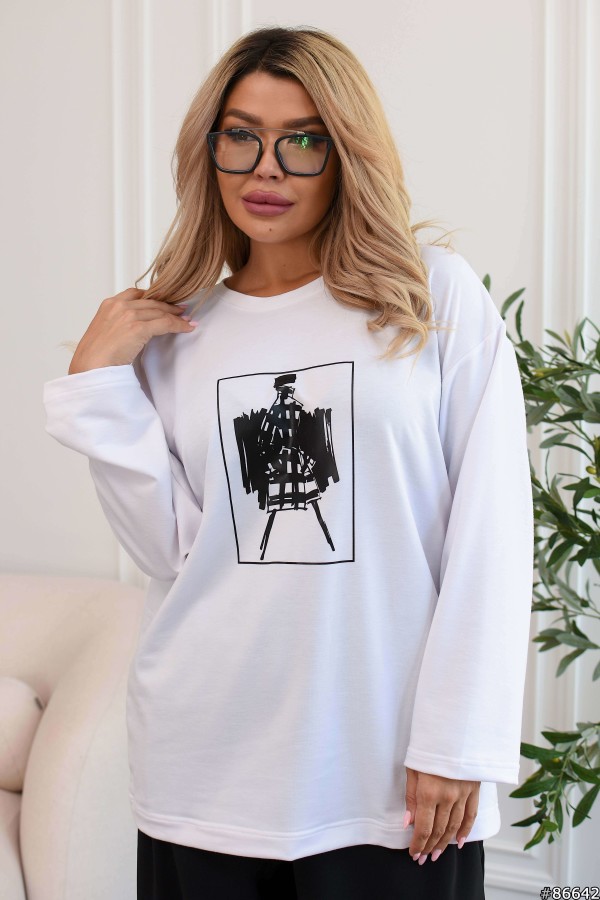 Опис Лонгслів ST- 86642 Білий з чорним сілуетом