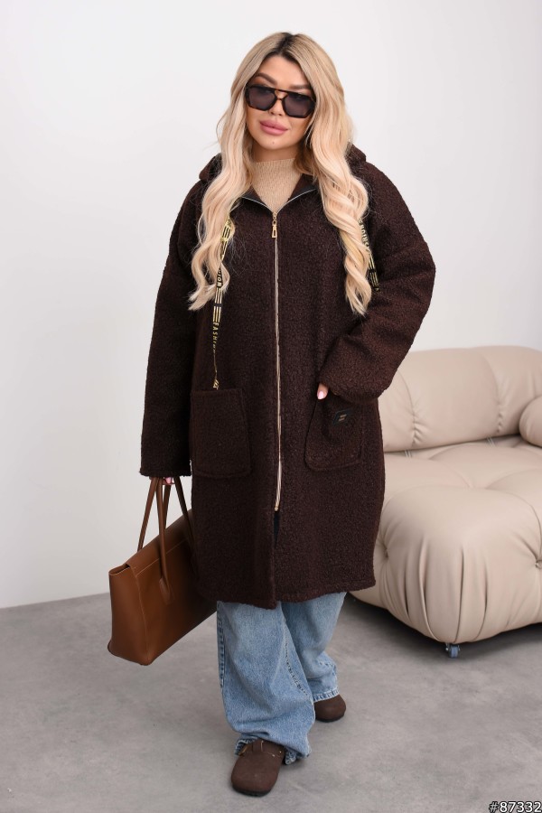 Пальто Букле Барашек колір: Шоколад Тканина баранчик буклєЗаміри готового виробу розмір 48-50: