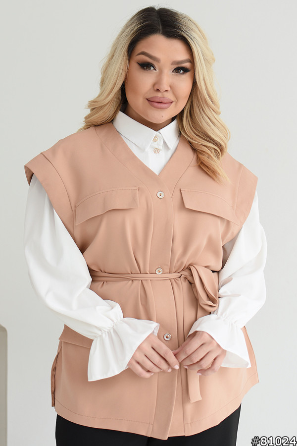 Garnitur kamizelka+koszula ST- 81024 Beżowy (ST- 81024)