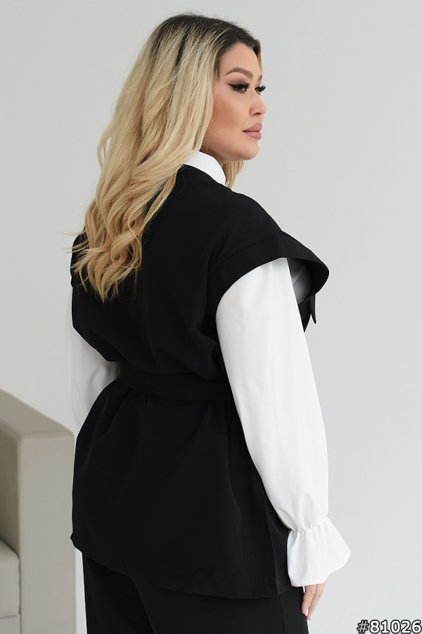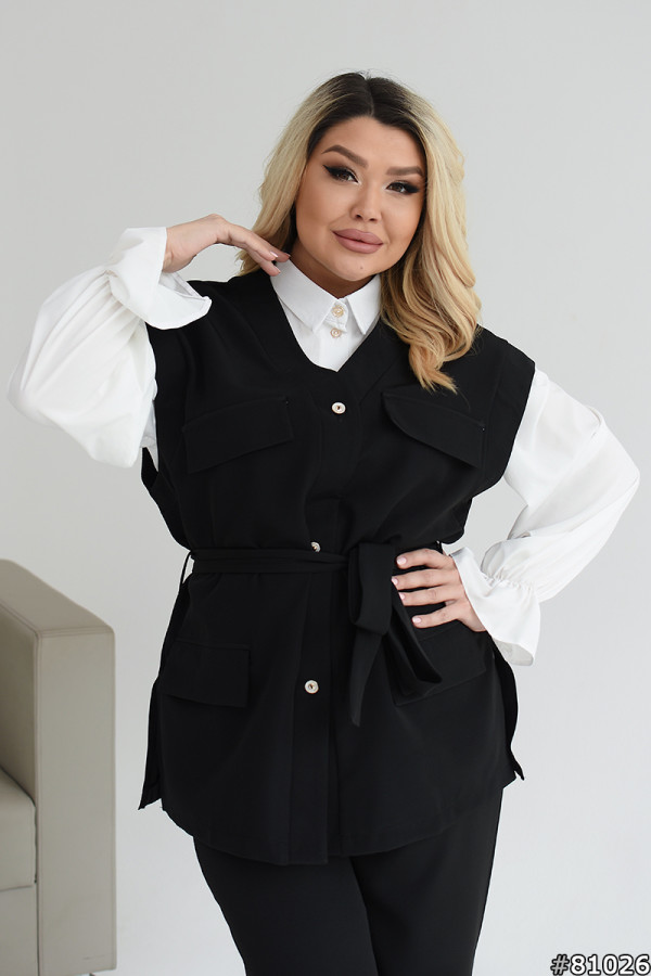Kamizelka + koszula Garnitur z krepy i miękki kolor: Czarny