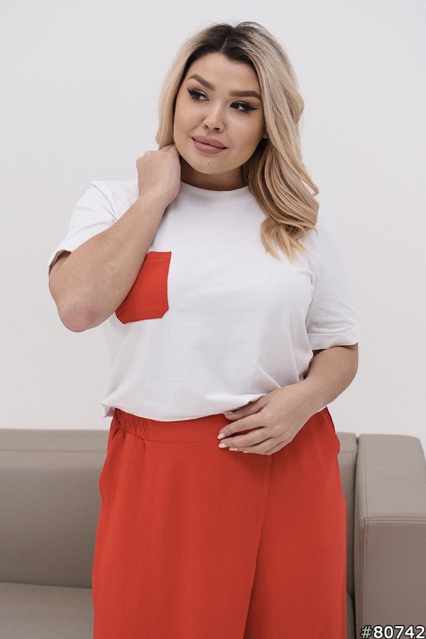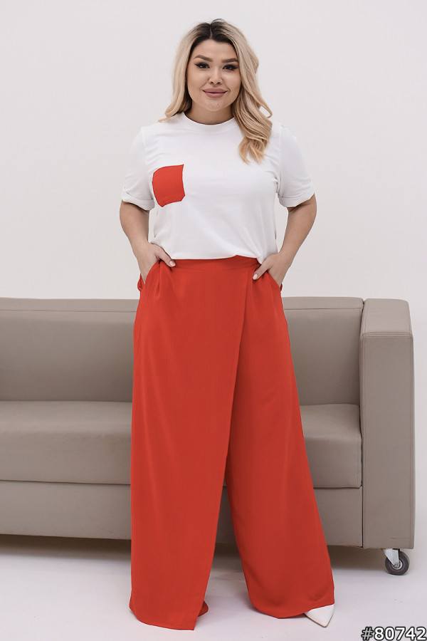 Garnitur len+dzianina turecki kolor: czerwony