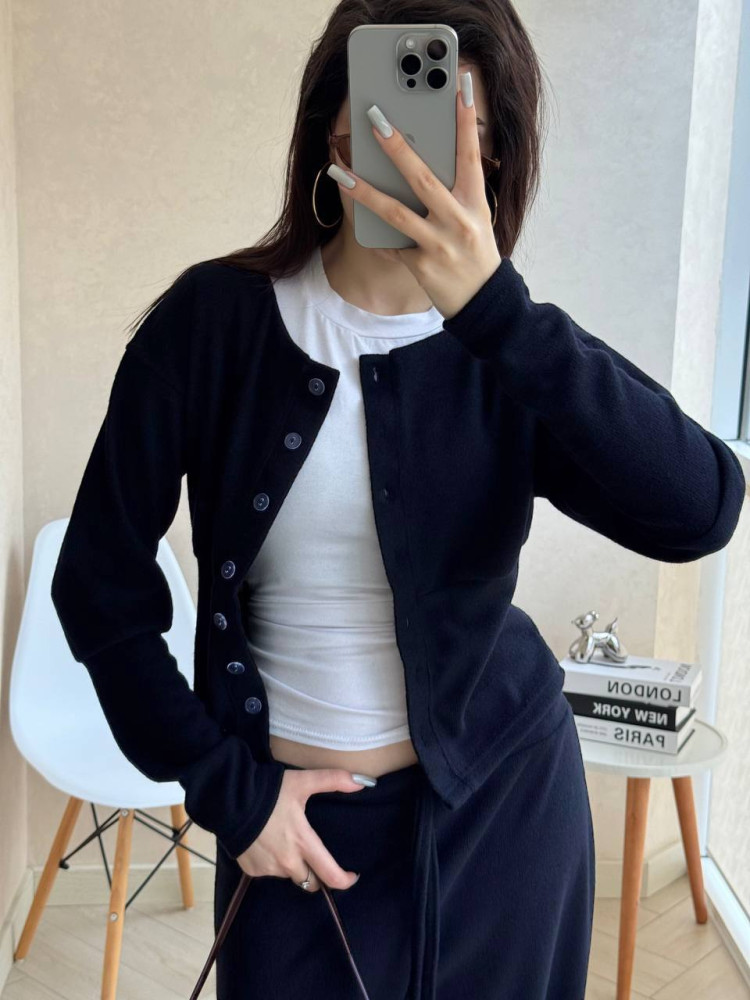 | Розмір: 42-44; 46-48; | Колір: Меланж; Молочний; Темно-синій; Чорний; |