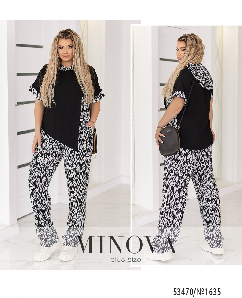 Мега стильний і просто вау-костюм, у якому ти точно не залишишся без компліментів!Вільна блуза з капюшоном і асиметричним низом — це не просто зручно, а ще й дуже оригінально. Такий крій одразу додає образу характеру й стилю. А штани вільного силуету з поясом на резинці та зручними кишенями — це твій комфорт на максимум!Цей костюм — ідеальний мікс краси та затишку. У ньому можна все: і на прогулянку, і на зустріч, і навіть просто насолоджуватись собою вдома. Той випадок, коли виглядаєш дорого, а почуваєшся, як у домашньому