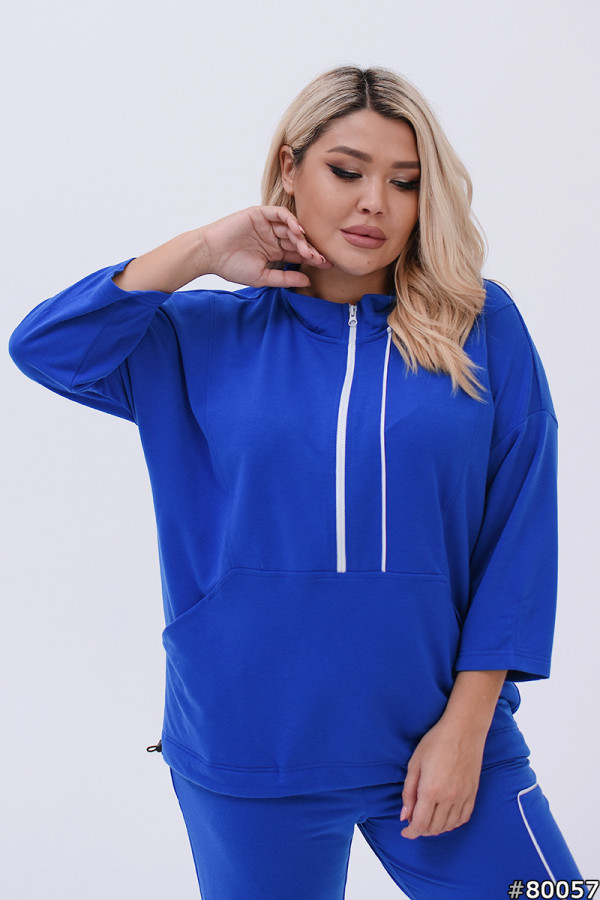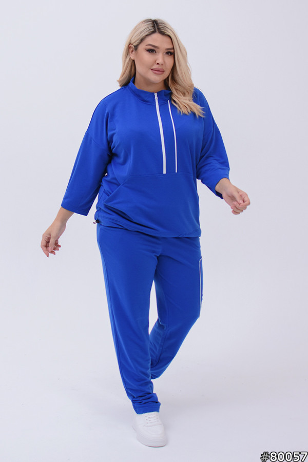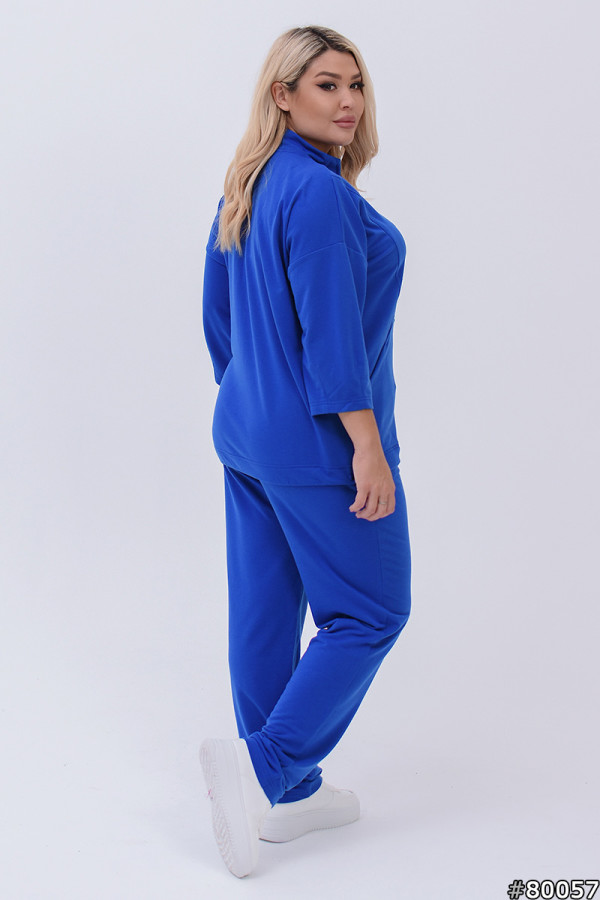 Замеры готового изделия размер 52-54: Кофта: ОГ – 128 см; ОТ – 130 см; ОС – 126 см; Длина – 71 см; Длина рукава – 30/28 см; Брюки: ОС – 122 см; ОСн – 70 см; Рез – 74/108 см; Длина – 105/85 см; Замеры готового изделия размер 56-58: Кофта: ОГ – 144 см; ОТ – 146 см; ОС – 140 см; Длина – 72 см; Длина рукава – 31/30 см; Брюки: ОС – 126 см; ОСн – 74 см; Рез – 82/118 см; Длина – 110/81 см; Замеры готового изделия размер 60-62: Кофта: ОГ – 144 см; ОТ – 140 см; ОС – 144 см; Длина – 73 см; Длина рукава – 32/31 см; Брюки: ОС – 136 см; ОСн – 80 см; Рез – 88/130 см; Длина – 111/79 см; Артикул ST-80057