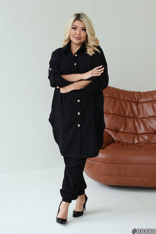 Замеры готового изделия размер 48-50: Кофта: ОГ – 128 см; ОТ – 128 см; ОС – 128 см; Длина – 94 см; Длина рукава реглана – 64 см; Брюки: ОС – 108 см; Рез – 80-96 см; Длина – 102 см; Замеры готового изделия размер 52-54: Кофта: ОГ – 138 см; ОТ – 138 см; ОС – 138 см; Длина – 96 см; Длина рукава реглана – 65 см; Брюки: ОС – 114 см; Рез – 94-110 см; Длина – 104 см; Замеры готового изделия размер 56-58: Кофта: ОГ – 146 см; ОТ – 146 см; ОС – 146 см; Длина – 98 см; Длина рукава реглана – 66 см; Брюки: ОС – 124 см; Рез – 106-120 см; Длина – 106 см; Замеры готового изделия размер 60-62: Кофта: ОГ – 152 см; ОТ – 152 см; ОС – 152 см; Длина – 100 см; Длина рукава реглана – 67 см; Брюки: ОС – 132 см; Рез – 116-130 см; Длина – 108 см; Артикул ST-80080