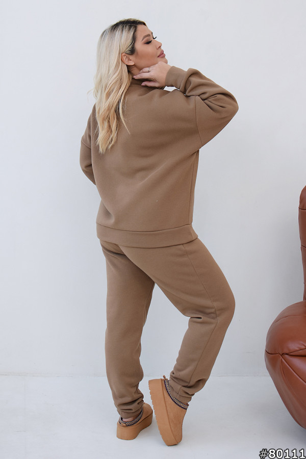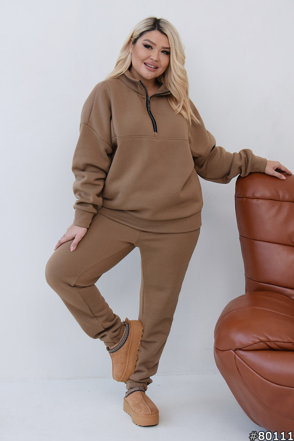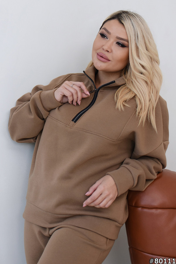 Теплый, комфортный костюм. Кофта снизу на манжете, воротник-стойка на молнии Брюки с карманами, на резинке. Замеры готового изделия размер 52-54: Кофта: ОГ – 130 см; ОС – 114 см; Рукав – 80 см; Длина – 70 см; Брюки: ОТ – 88-110 см; ОС – 116 см; Длина – 106 см; Замеры готового изделия размер 56-58: Кофта: ОГ – 136 см; ОС – 120 см; Рукав – 80 см; Длина – 70 см; Брюки: ОТ – 98-120 см; ОС – 126 см; Длина – 108 см; Артикул ST-80111