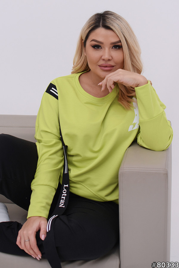 Замеры готового изделия размер 48-50: Кофта: ОГ – 120 см; ОТ – 106 см; ОС – 122 см; Длина – 68/71 см; Длина рукава от горловины – 69 см; Брюки: ОТ(резинка) – 70 см; ОС – 108 см; Длина – 100 см; Замеры готового изделия размер 52-54: Кофта: ОГ – 128 см; ОТ – 112 см; ОС – 128 см; Длина – 67/72 см; Длина рукава от горловины – 72 см; Брюки: ОТ(резинка) – 74 см; ОС – 122 см; Длина – 101 см; Замеры готового изделия размер 56-58: Кофта: ОГ – 136 см; ОТ – 120 см; ОС – 136 см; Длина – 69/75 см; Длина рукава от горловины – 75 см; Брюки: ОТ(резинка) – 80 см; ОС – 124 см; Длина – 102 см; Замеры готового изделия размер 60-62: Кофта: ОГ – 142 см; ОТ – 130 см; ОС – 140 см; Длина – 72/76 см; Длина рукава от горловины – 78 см; Брюки: ОТ (резинка) – 90 см; ОС – 132 см; Длина – 103 см; Артикул ST-80333