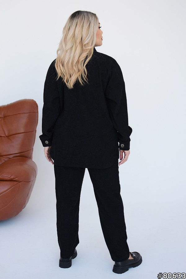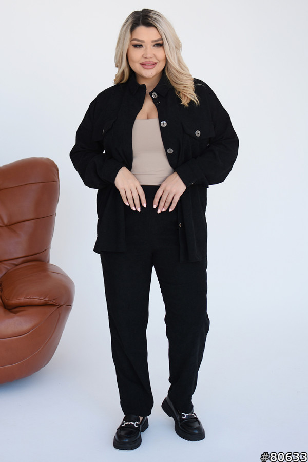 Рубашка свободного кроя, на пуговицах, с карманами впереди, брюки на резинке, суженные снизу, с карманами в боковых швах