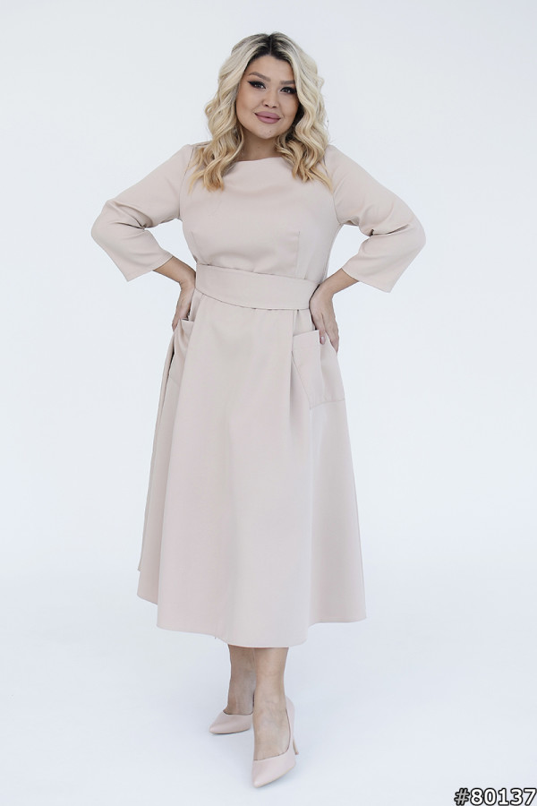 Платье с укороченным рукавом, застегивается на молнию посередине спинки. В комплект входит пояс Замеры готового изделия размер 52: ОГ – 104 см; ОТ – 92 см; Длина – 122 см; Длина рукава – 48 см; Замеры готового изделия размер 54: ОГ – 108 см; ОТ – 96 см; Длина – 122 см; Длина рукава – 48 см; Замеры готового изделия размер 56: ОГ – 112 см; ОС – 100 см; Длина – 122 см; Длина рукава – 48 см; Артикул ST-80137
