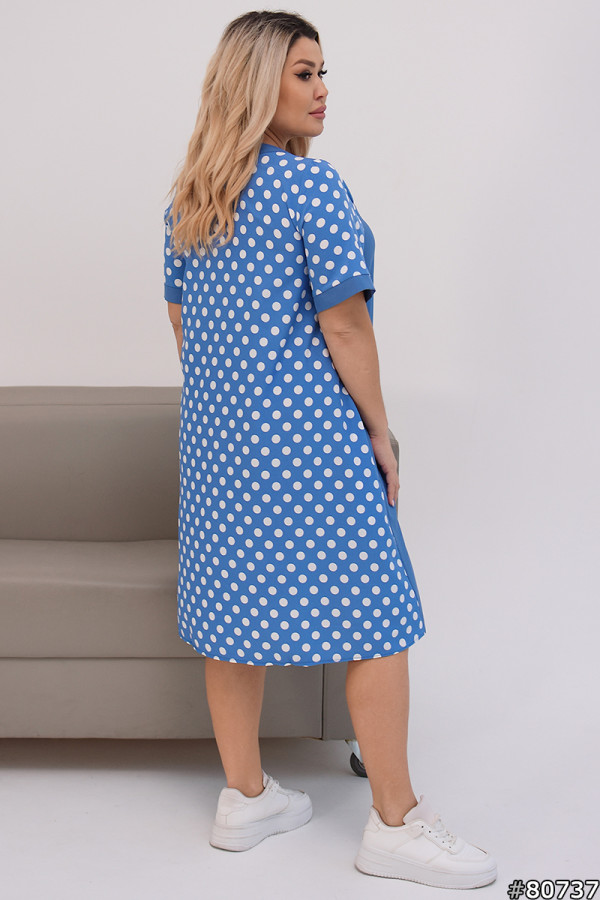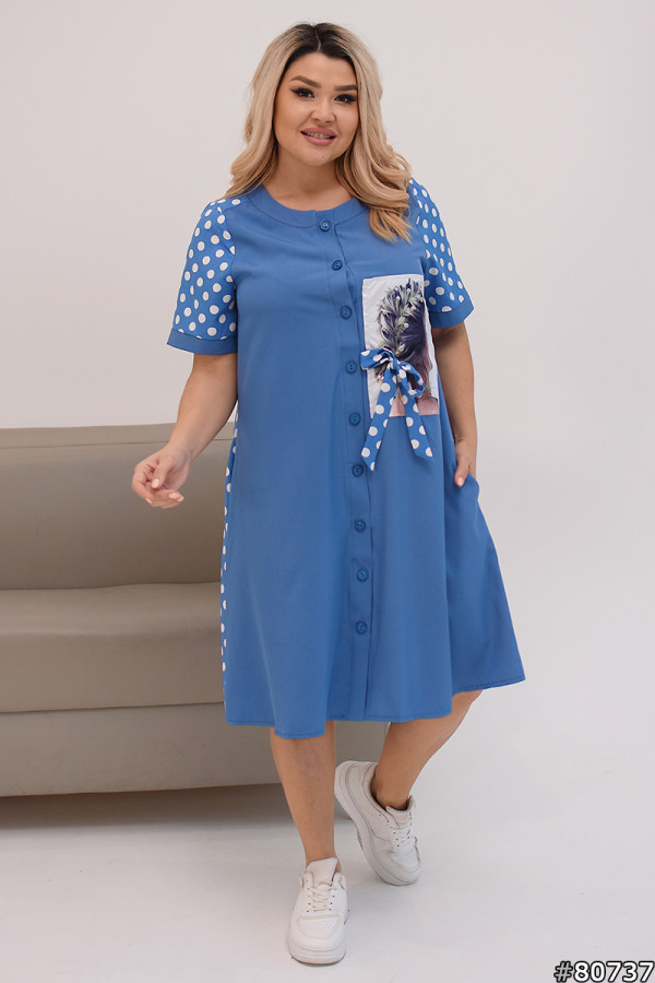 Платье свободного кроя с коротким рукавом. Застегивается на пуговицы, в боковых швах есть карманы.