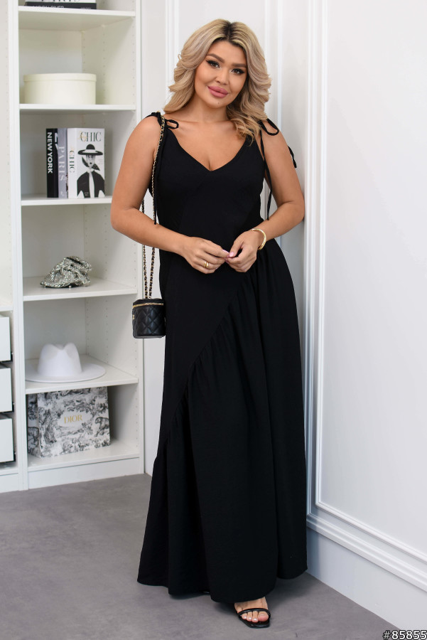 Сарафан Льон жатка колір: Чорний Довжина в пол,регулюється бретелями,еластична резинка на спинці