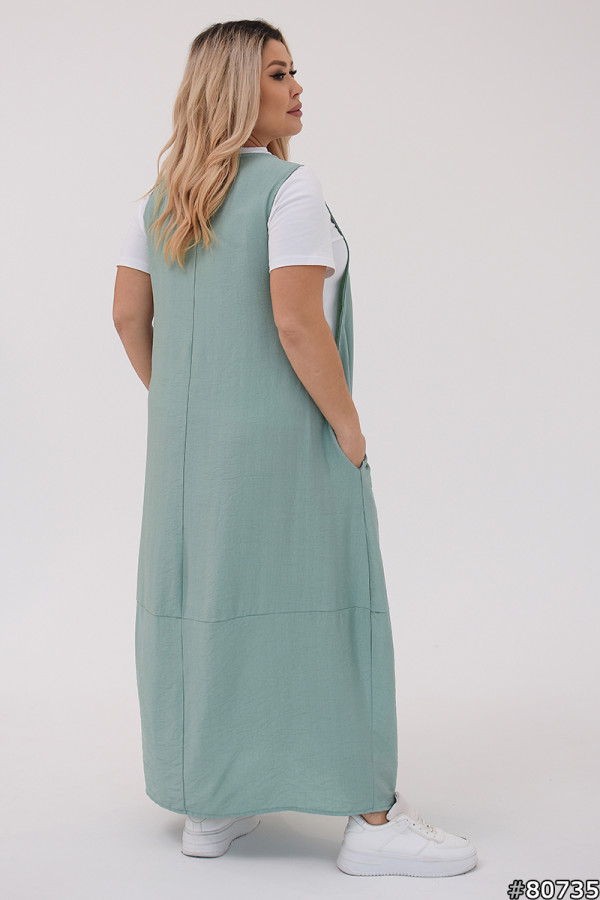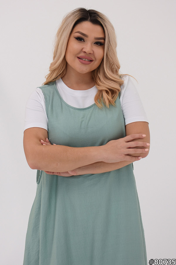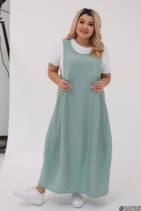Сарафан+футболка Льон+трикотаж турецький колір: М'ятний Футболка напівприлеглого силуету з коротким рукавом.Сарафан без рукава вільного крою