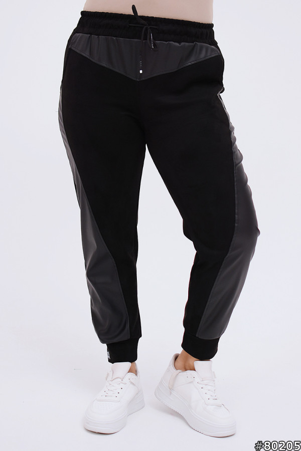 Штани Замш+еко шкіра колір: Чорний Заміри готового виробу розмір 50-52: