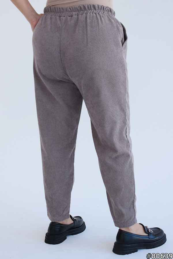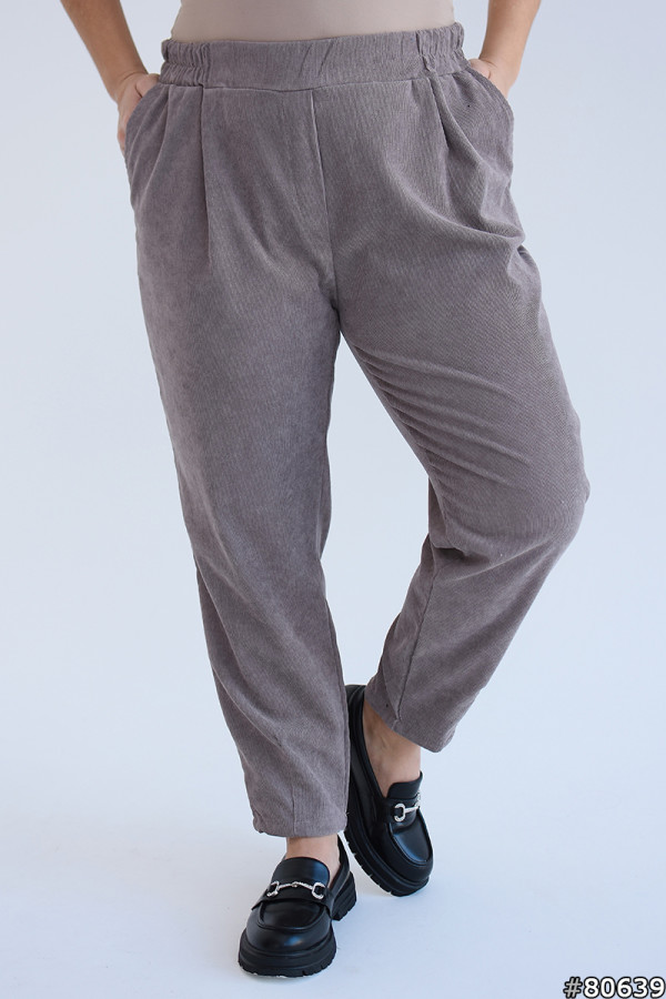 Штани Мікровельвет колір: Мокко Штани вільні,не облягають фігуру,талія на гумці,з кишенями у бокових швахЗаміри готового виробу розмір 52-54: