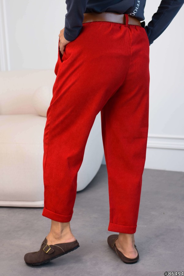 Штани Мікровельвет колір: Червоний Пояс у комплекті