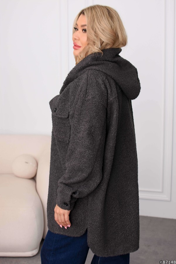 Сорочка Штучне хутро Барашек на флісі колір: Графіт Сорочка з капюшоном на ґудзиках з баранчику на флісі