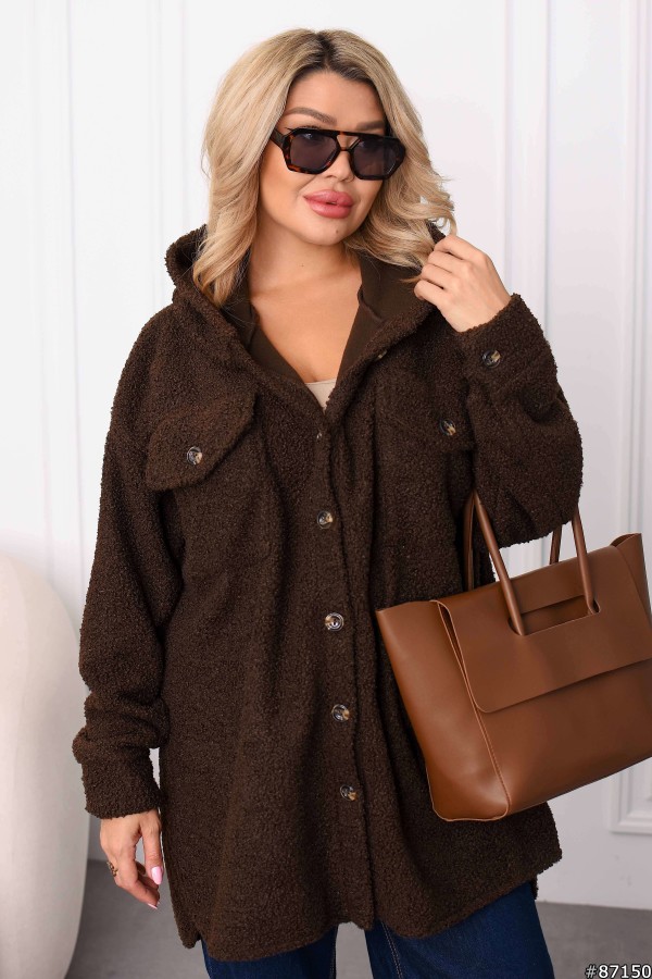 Сорочка Штучне хутро Барашек на флісі колір: Шоколад Сорочка з капюшоном на ґудзиках з баранчику на флісі