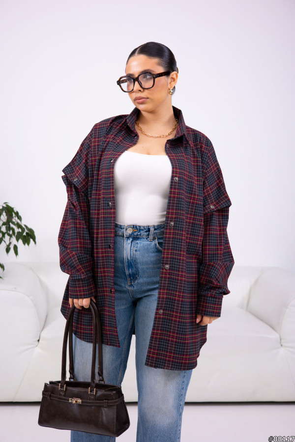 Сорочка Байка-фланель колір: Червоний Сорочка в клітинку з відстібними рукавами.Сорочка трансформер.Рукава на кнопці.