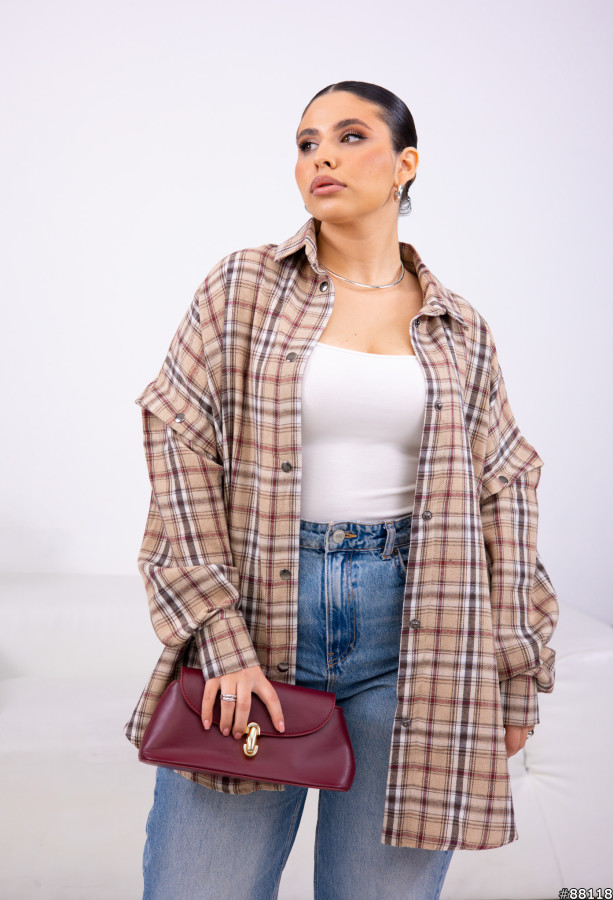 Сорочка Байка-фланель колір: Бежевий-коричневий Сорочка в клітинку з відстібними рукавами.Сорочка трансформер.Рукава на кнопці.