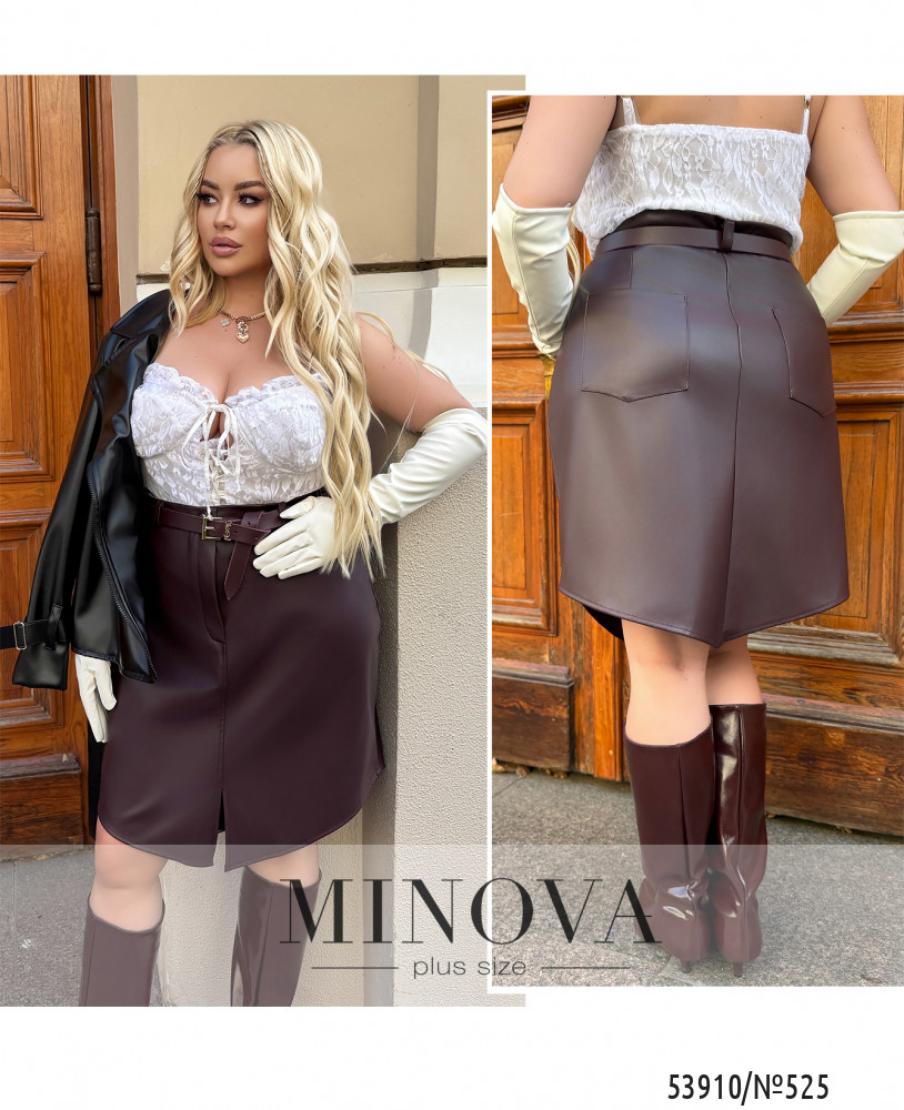 Спідниця з еко-шкіри на флісі — стильна й тепла модель для холодного сезону. Вона застібається на кнопку та блискавку, має шльовки для пояса, що дозволяє легко доповнювати образ ременем. Незвичний крій ромбом створює оригінальний силует, а невеликий розріз спереду додає динаміки й легкості. Позаду розташовані дві кишеньки, які підкреслюють сучасний дизайн та практичність. Ця спідниця поєднує комфорт і трендовий вигляд, дозволяючи створювати як повсякденні, так і більш виразні образи. Пояс НЕ входить в комплект.