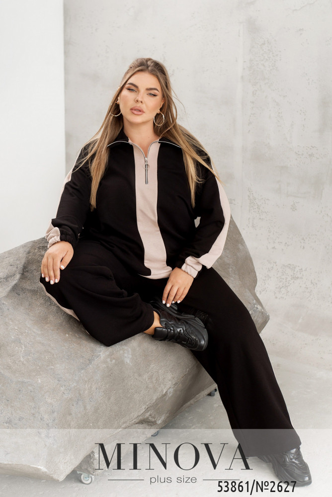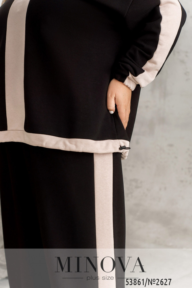 Твій повсякденний стиль і комфорт — це наш новий костюм.Кофта з акцентними вставками підкреслює модний образ, невеликий комір-стійка та блискавка додають зручності, а рукава зі заниженою лінією плеча і затяжки знизу дарують ідеальну посадку. Штани вільного крою з акцентними вставками, еластичною талією та бічними кишеньками завершують образ, роблячи його зручним для будь-якого дня. Тренд, свобода рухів і практичність — все в одному костюмі!