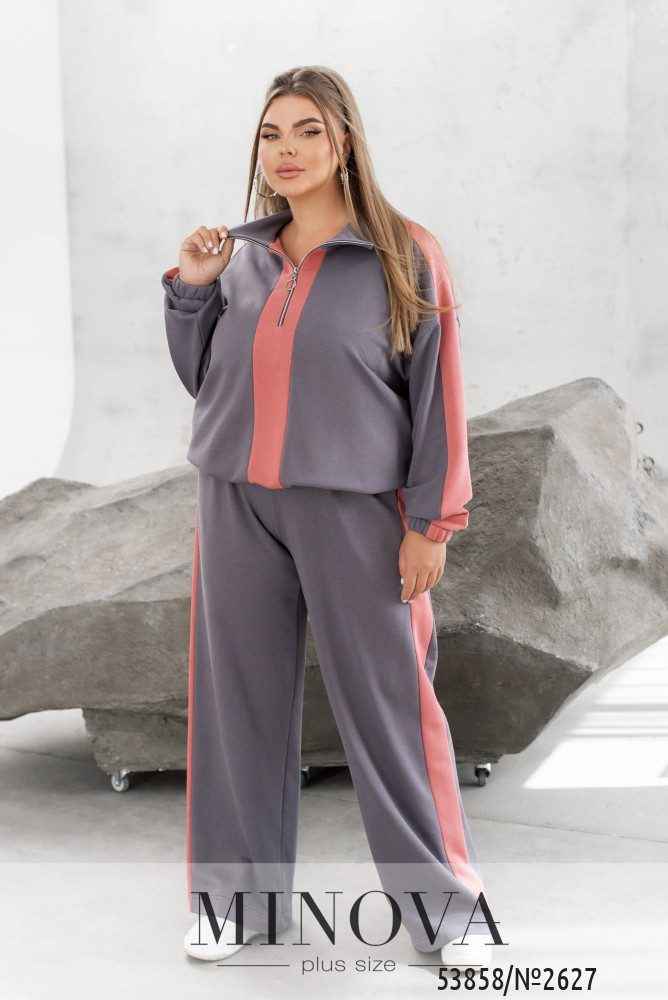 Твій повсякденний стиль і комфорт — це наш новий костюм.Кофта з акцентними вставками підкреслює модний образ, невеликий комір-стійка та блискавка додають зручності, а рукава зі заниженою лінією плеча і затяжки знизу дарують ідеальну посадку. Штани вільного крою з акцентними вставками, еластичною талією та бічними кишеньками завершують образ, роблячи його зручним для будь-якого дня. Тренд, свобода рухів і практичність — все в одному костюмі!