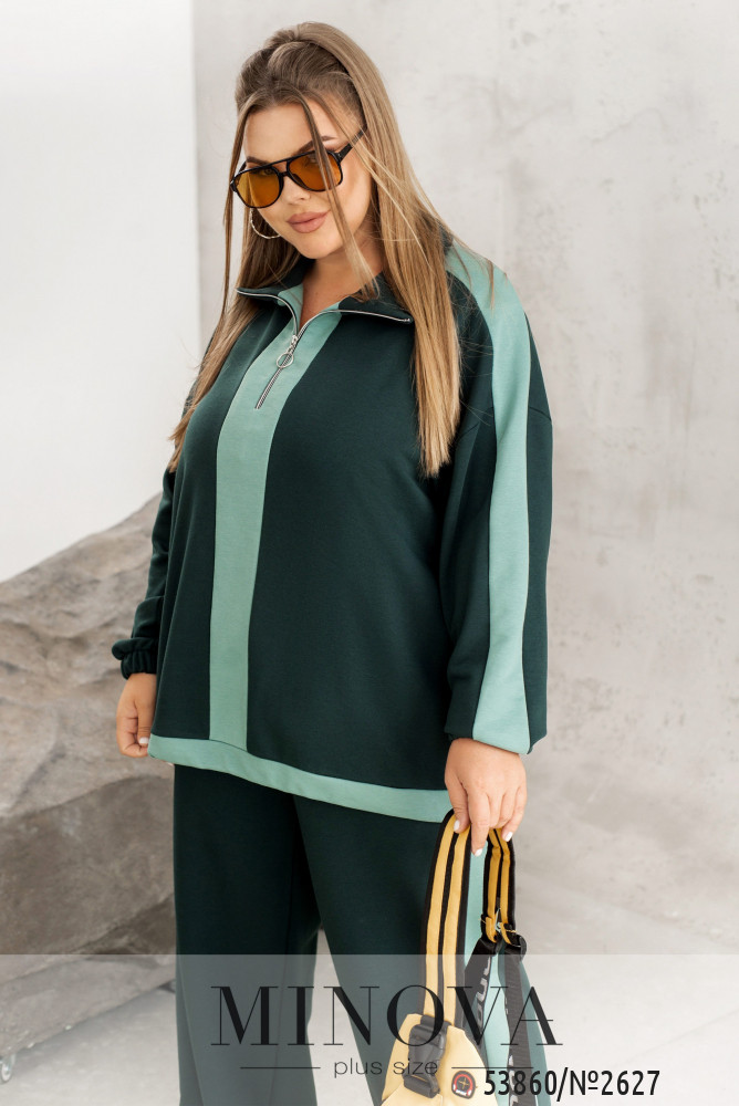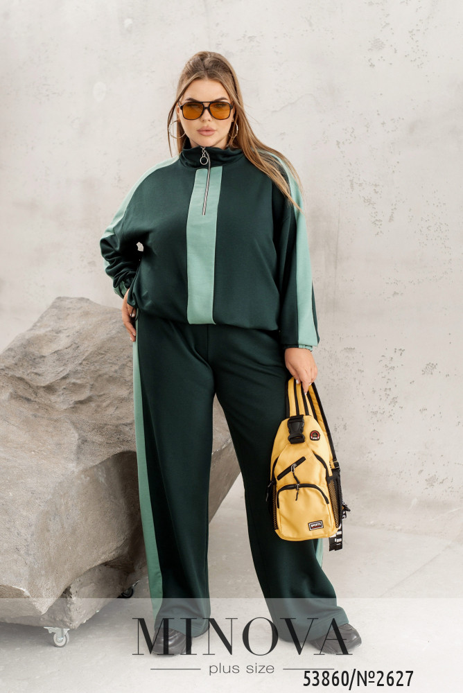 Твій повсякденний стиль і комфорт — це наш новий костюм.Кофта з акцентними вставками підкреслює модний образ, невеликий комір-стійка та блискавка додають зручності, а рукава зі заниженою лінією плеча і затяжки знизу дарують ідеальну посадку. Штани вільного крою з акцентними вставками, еластичною талією та бічними кишеньками завершують образ, роблячи його зручним для будь-якого дня. Тренд, свобода рухів і практичність — все в одному костюмі!