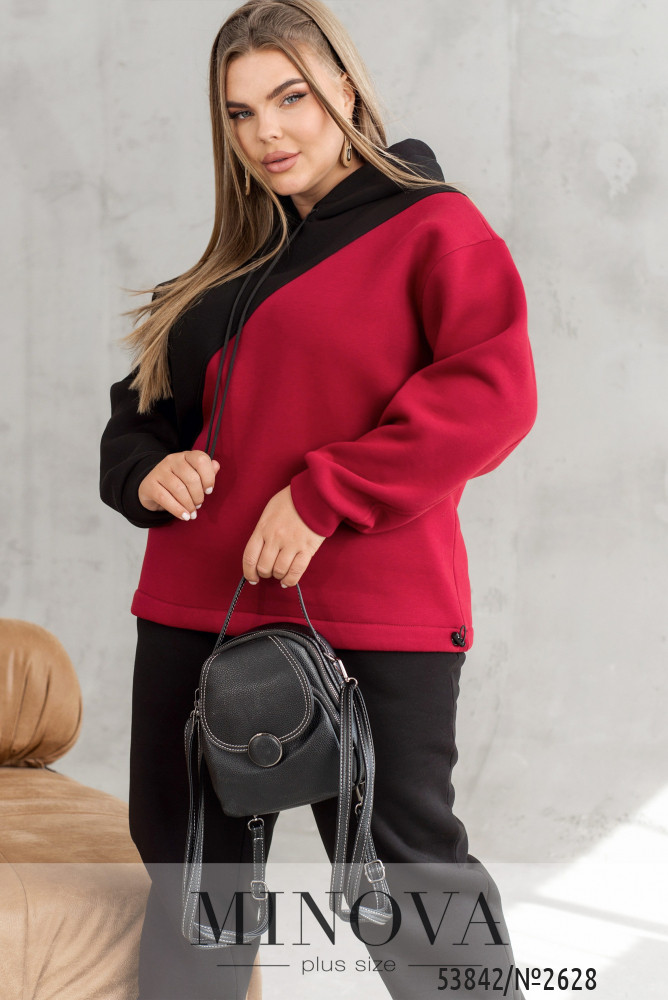 Теплий костюм із тринитки на флісі — втілення затишку та стилю. Його високоякісна тканина приємно огортає тіло, даруючи відчуття тепла й комфорту, зберігаючи при цьому ідеальний вигляд: не кошлатиться та не втрачає форми.Кофта вільного крою із заниженою лінією плеча виглядає невимушено та сучасно. Капюшон зі шнурком через люверси та акуратні затяжки по низу створюють елегантний акцент. Штани з високою посадкою, м’якою гумкою на талії, кишенями та манжетами додають образу гармонійності та практичності.Цей костюм — не просто одяг, а ваша особиста територія тепла, де стиль і комфорт живуть в ідеальній рівновазі. Пояс НЕ входить в комплект.