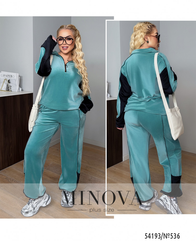 Цей костюм — про глибокий колір, м’яку фактуру та той самий ефект “дорого без зайвих зусиль”Виконаний із приємного до тіла велюру з делікатним благородним переливом, який красиво грає при русі та додає образу статусності. Тканина щільна, але комфортна, добре тримає форму й виглядає акуратно протягом усього дня.Світшот вільного крою зі спущеною лінією плеча створює актуальний розслаблений силует. Комір-стійка з блискавкою дозволяє змінювати настрій образу — можна носити повністю закритим або злегка розстібнутим для більш невимушеного вигляду.Штани прямого крою м’яко лягають по фігурі та візуально витягують силует. Пояс на гумці забезпечує комфортну посадку без перетискання, а довжина красиво працює як із кросівками, так і з більш масивним взуттям.Це універсальний комплект для міста, подорожей і активних буднів — коли хочеться виглядати зібрано, стильно й впевнено, але відчувати абсолютний комфорт.