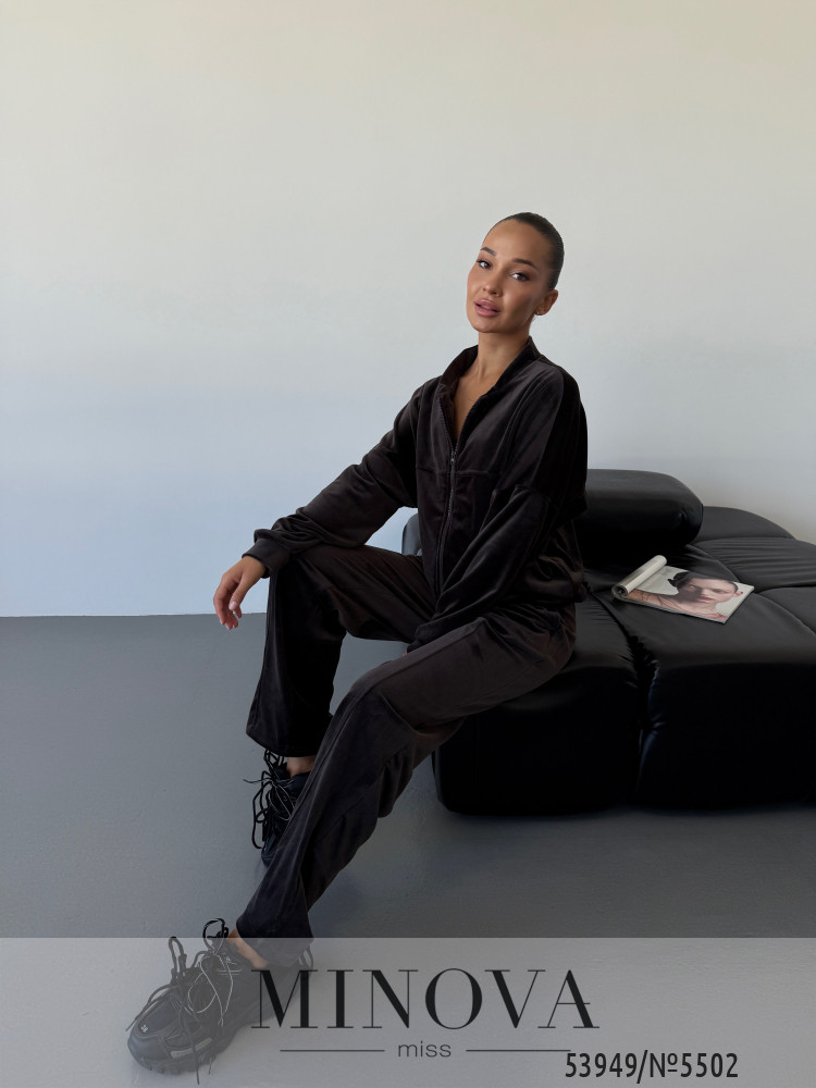 Повсякденний трендовий костюм із м’якого велюру — ідеальний вибір для осінніх днів.Кофта вільного крою на блискавці дарує комфорт і зручність, а прямі штани з еластичною талією та двома кишенями створюють стильний і практичний силует. Універсальний комплект, який легко стане улюбленим у вашому гардеробі.