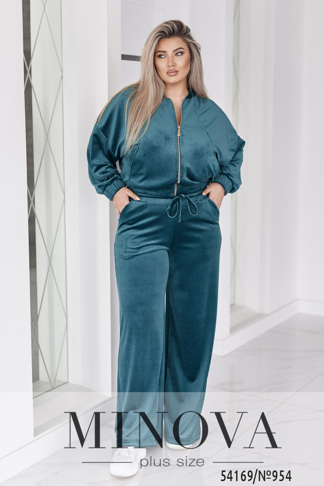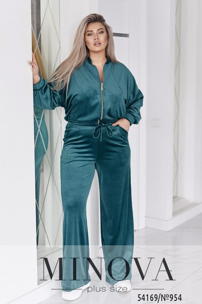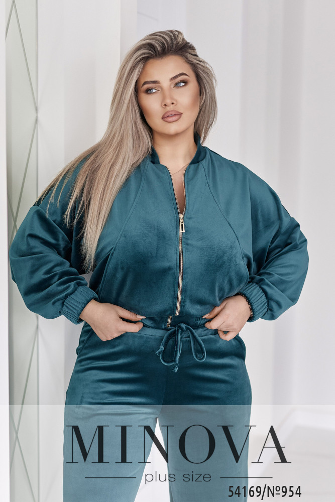 Велюровий оксамитовий костюм складається з кофти і штанів. Кофта вільного крою oversize, з застібкою блискавкою і коміром стійкою. В рельєфних швах спереду є кишені. Рукав зі спущеною лінією плеча, манжети на рукавах та низ кофти на еластичній широкій резинці.Штани - висока комфортна посадка. Пояс на широкій резинці + декоративний шнурок.Прямий вільний крій, з кишенями.Глибокі трендові відтінки та оксамитова текстура створюють образ, який виглядає дорого без зайвих деталей. Лаконічний крій, м’які лінії та ідеальна посадка підкреслюють жіночність і впевненість.