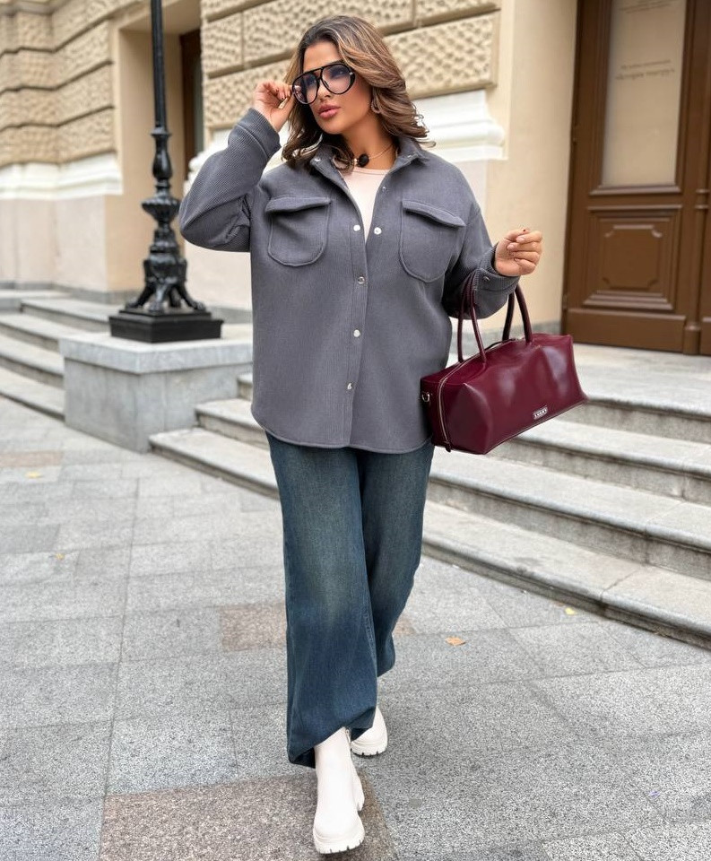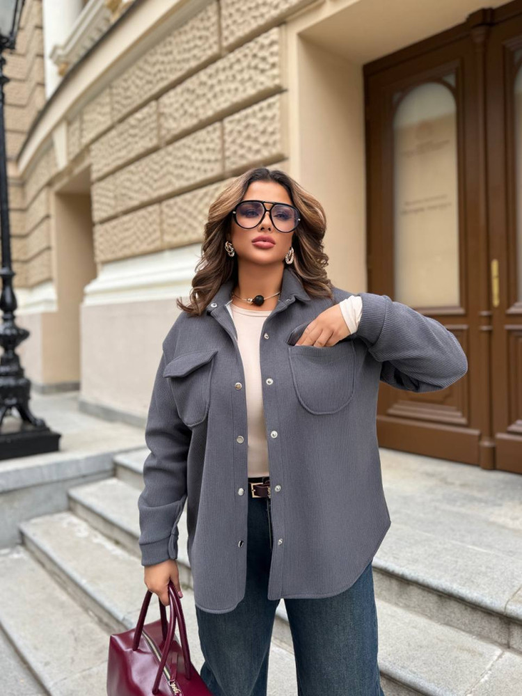 Опис Стильна вельветова сорочка на хутрі VOLF-399