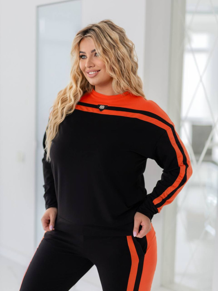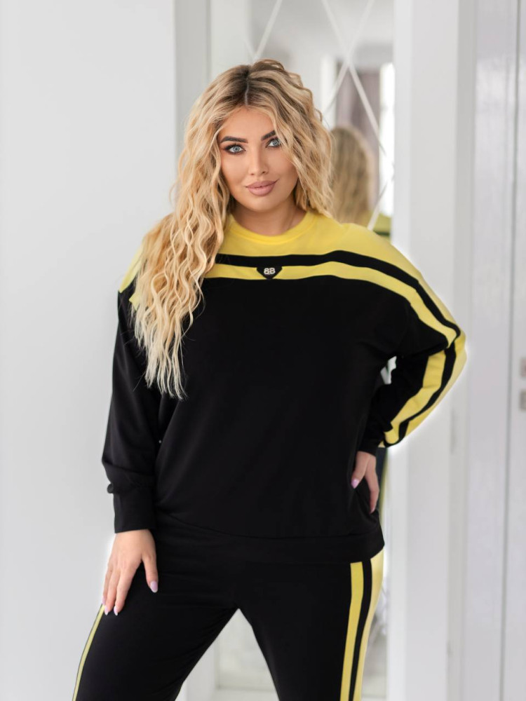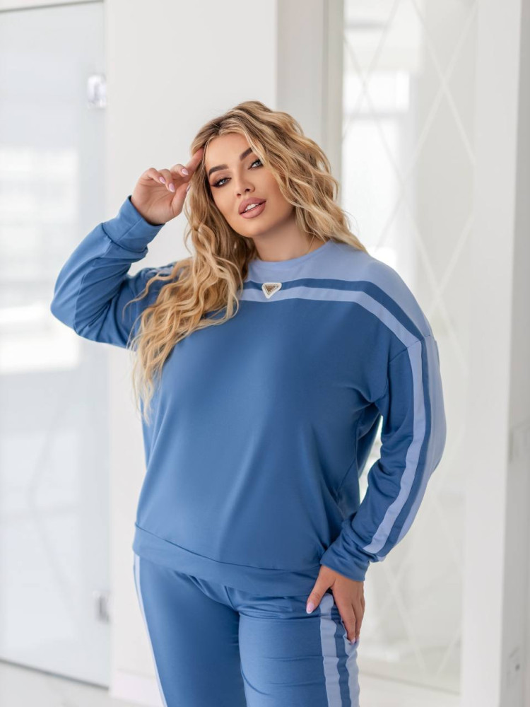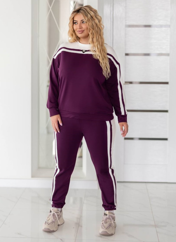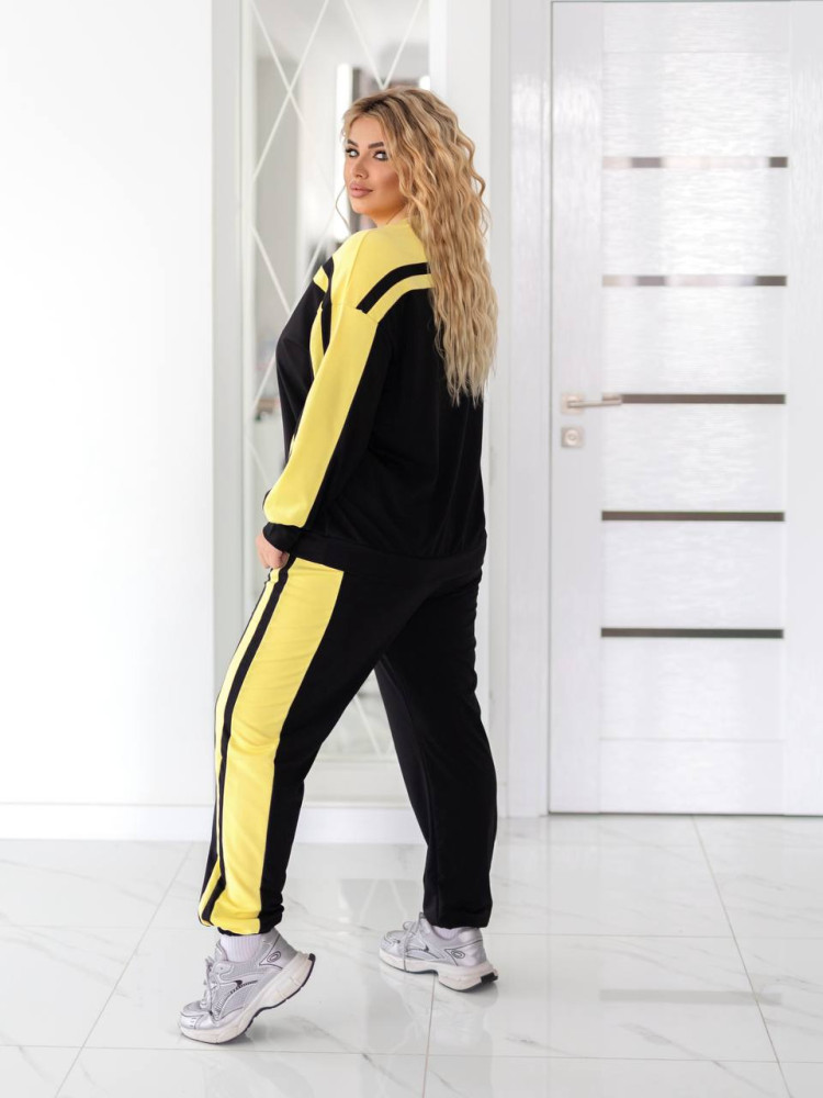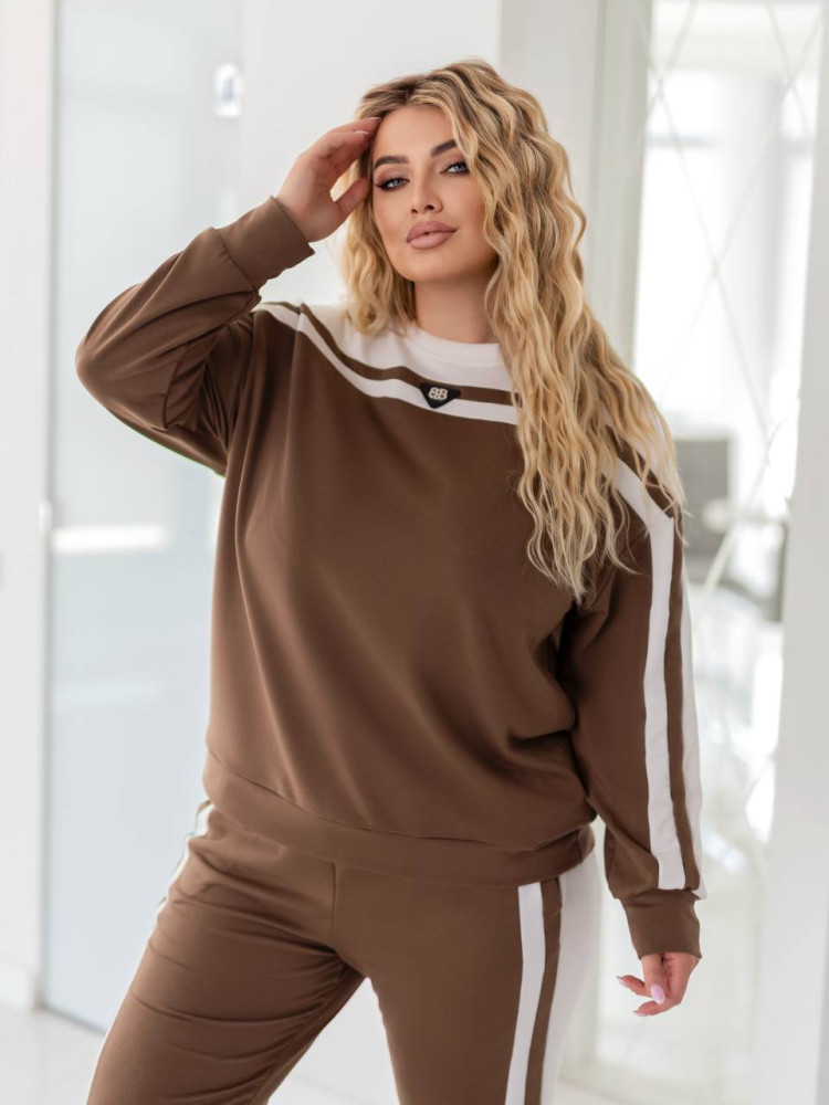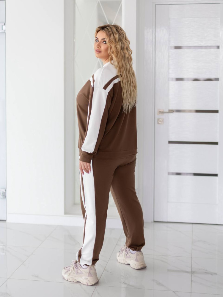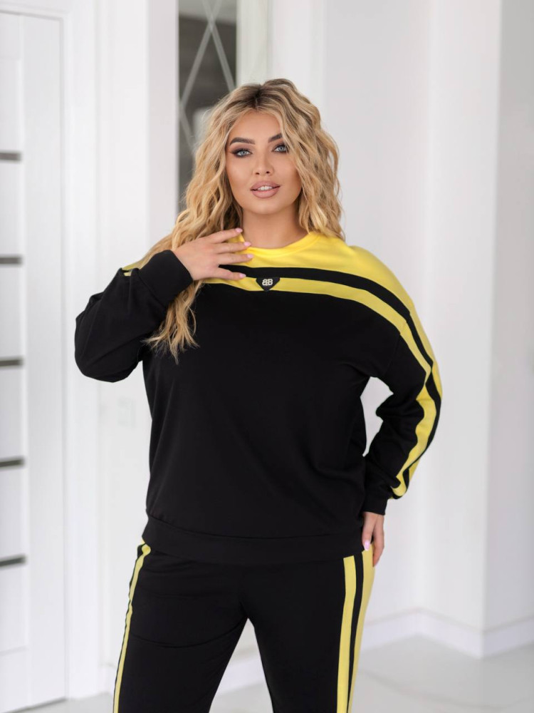 Стильні штани, висока посадка, на резинці, внизу манжет, кармани . На штанах лампас. На кофті стильна нашивка.