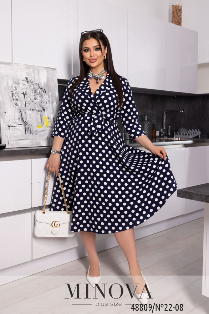 Обожнюємо сукні в горох, відразу бачимо картинку 70-80-х зі стильною зачіскою та танцями. Розглянемо нашу сукню більш детально. Ми виготовили сукню без застібок з приємної тканини, яка має розтяжність. Відрізна лінія талії зробить силует елегантним, а доповнити образ ми пропонуємо стильним пояском, який входить в комплект. Виріз V- форми з відкладним комірцем, що візуально витягує лінію декольте та надає змогу комбінувати сукню з улюбленими аксесуарами. Рукава довжини 3/4, а по боках ми додали не помітні кишені. Одягайте сукню на побачення, вечірку чи в офіс. Така сукня не має кордонів і підходить під будь-яку подію.
