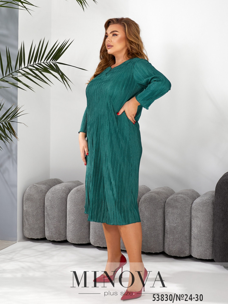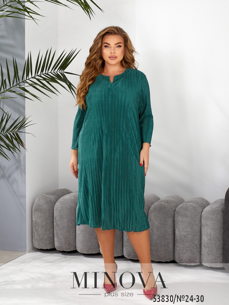 Ця вишукана сукня з плісированої тканини — справжня знахідка для жінок, які цінують комфорт і стиль в одному образі. Сукня має прямий, вільний крій, який красиво струмує по фігурі, не сковує рухів і водночас візуально витягує силует. Довжина міді додає образу елегантності та дозволяє виглядати доречно у будь-якій ситуації.Горловина виконана з невеликим розрізом у формі краплі, що підкреслює ніжність шиї та додає жіночного шарму. Рукави довжиною 3/4 роблять образ більш легким і універсальним для різних сезонів.Плісирована фактура тканини створює грайливу гру світла та додає динаміки кожному руху. Завдяки такій тканині сукня не потребує додаткового декору — вона самодостатня та ефектна.Ця модель чудово поєднується з класичними туфлями на підборах для урочистого вигляду або з лаконічними балетками чи чобітками для більш повсякденного стилю. Пояс НЕ входить в комплект.
