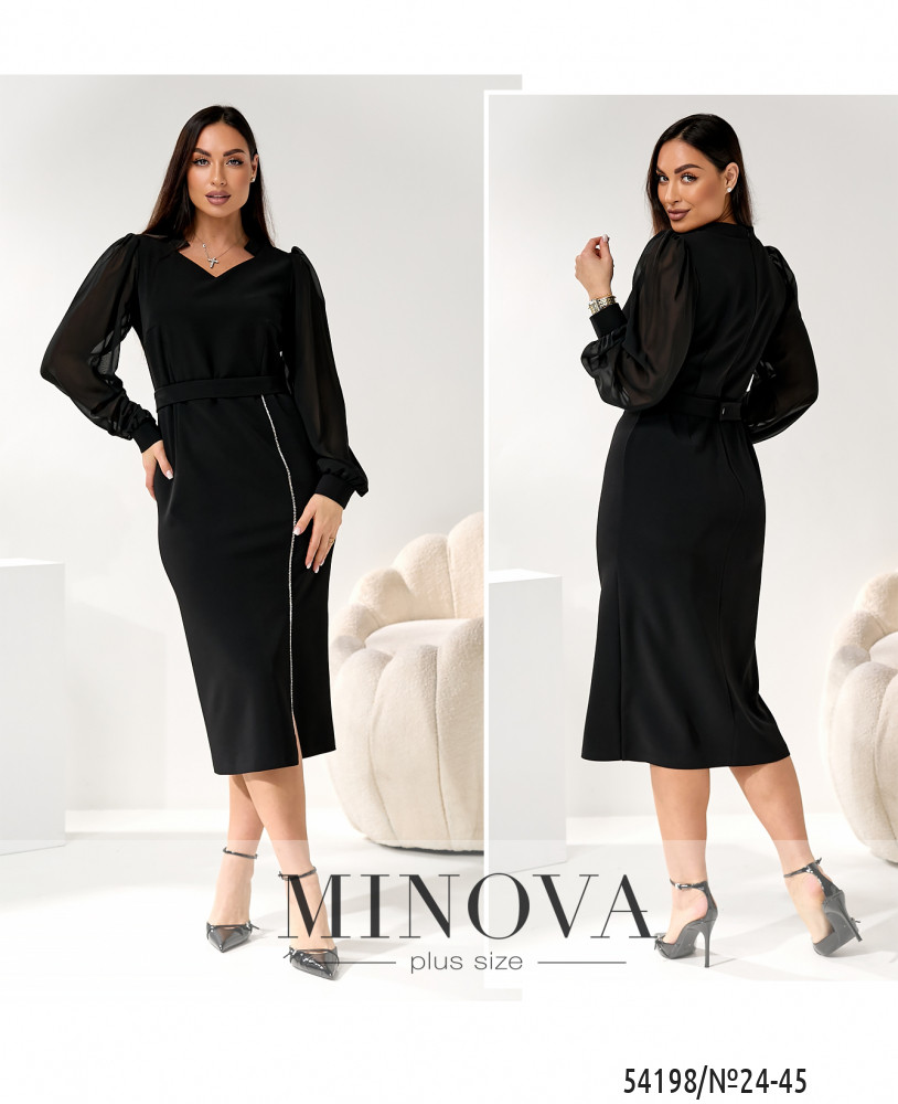Елегантна міді сукня з приталеним силуетом красиво підкреслює талію та плавно окреслює лінію стегон. Верх виконаний з легкої напівпрозорої тканини — рукави вільні, зібрані на манжетах, додають образу ніжності й балансують силует. Акуратний V-подібний виріз витончено відкриває зону декольте.Талія підкреслена поясом у тон, що створює чіткий, жіночний силует. Спідниця прямого крою довжини міді візуально витягує фігуру, а декоративна блискавка збоку додає родзинку та легкий акцент.Ідеальний варіант для вечері, події або коли просто хочеться виглядати бездоганно — без зайвої помпезності, але з характером Пояс входить в комплект.