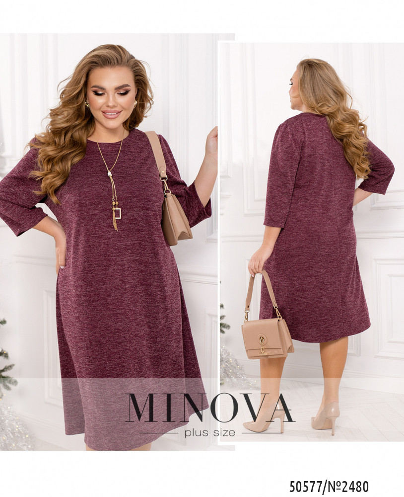 50-52 р-р: довжина сукні106см, довжина рукава від плечового шва43см, обхват рукава 42см, ОГ - 104/108см, ОТ -108см, ОС -116см. Відеоогляд Сукня 2480-бордо