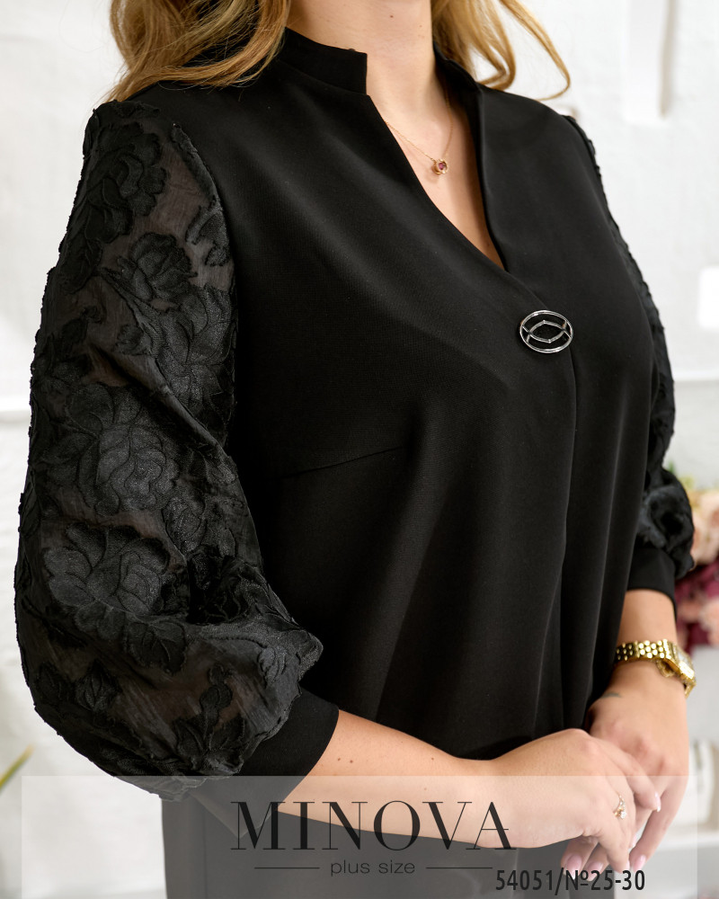 Елегантна сукня, що поєднує ніжність, вишуканість і комфорт.Модель має вільний прямий крій, який красиво сідає на фігуру та забезпечує легкість у русі.V-подібний виріз прикрашений витонченою декоративною застібкою, що додає образу делікатного акценту.Головна родзинка — прозорі рукави 3/4 із флористичною вишивкою, які створюють повітряний, святковий настрій.Нижня манжета з м’якою резинкою формує акуратну лінію рукава.Ця сукня — ідеальний вибір для урочистих подій, вечірок чи особливих моментів, коли хочеться виглядати бездоганно, жіночно та по-справжньому чарівно.