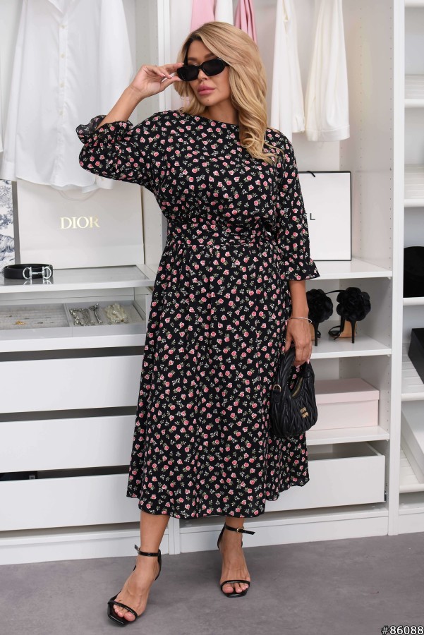 Сукня Штапель колір: Чорний Талія на резинці, тягнеться 16-18 см