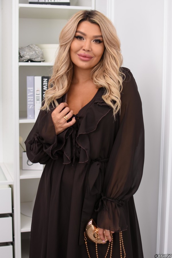 Сукня Шифон+трикотажний підклад колір: Шоколад Тканина: