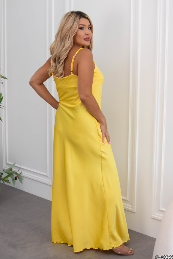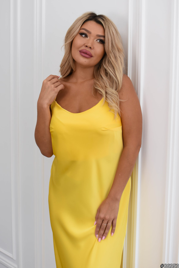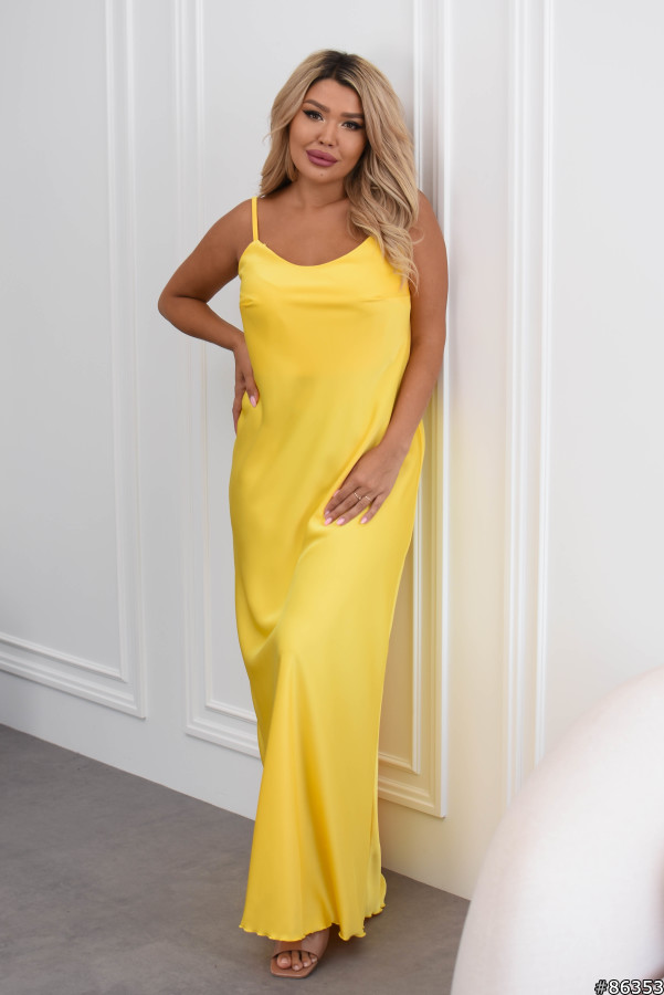 Сукня Атлас колір: Жовтий Тканина не тягнеться. Шлейки регулюються, завдяки їм можна регулювати довжину.Заміри готового виробу розмір 48-50: