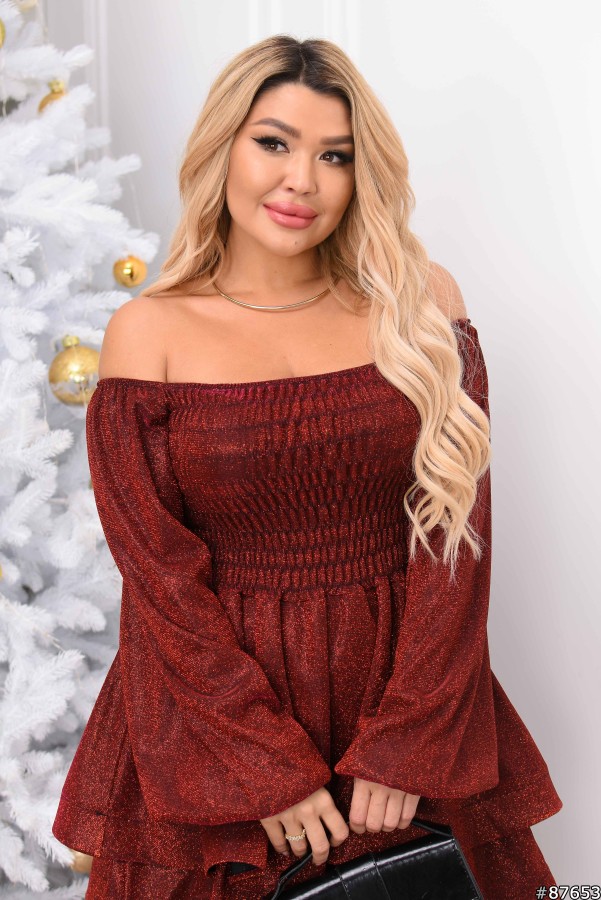 Сукня Блискучий трикотаж колір: Бордовий Заміри готового виробу розмір 48-50: