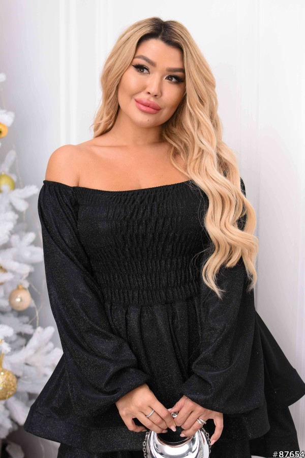 Сукня Блискучий трикотаж колір: Чорний Заміри готового виробу розмір 48-50: