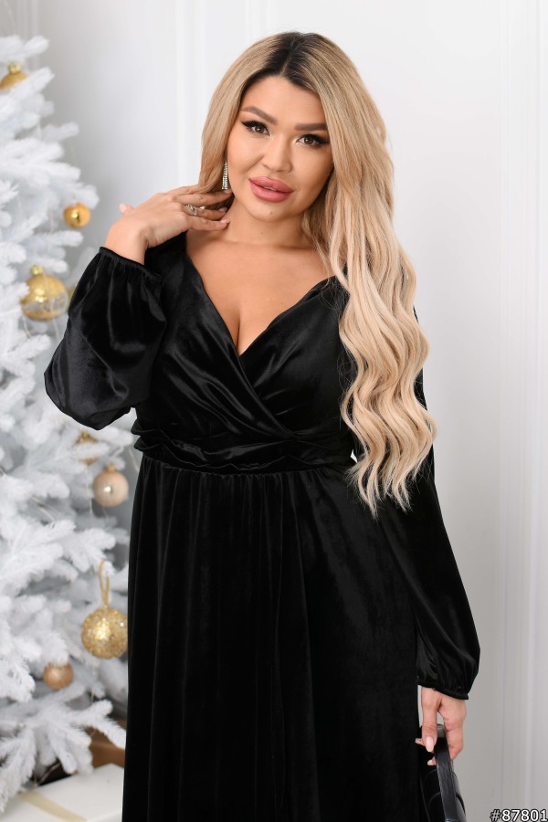 Сукня Бархат колір: Чорний Заміри готового виробу розмір 48-50: