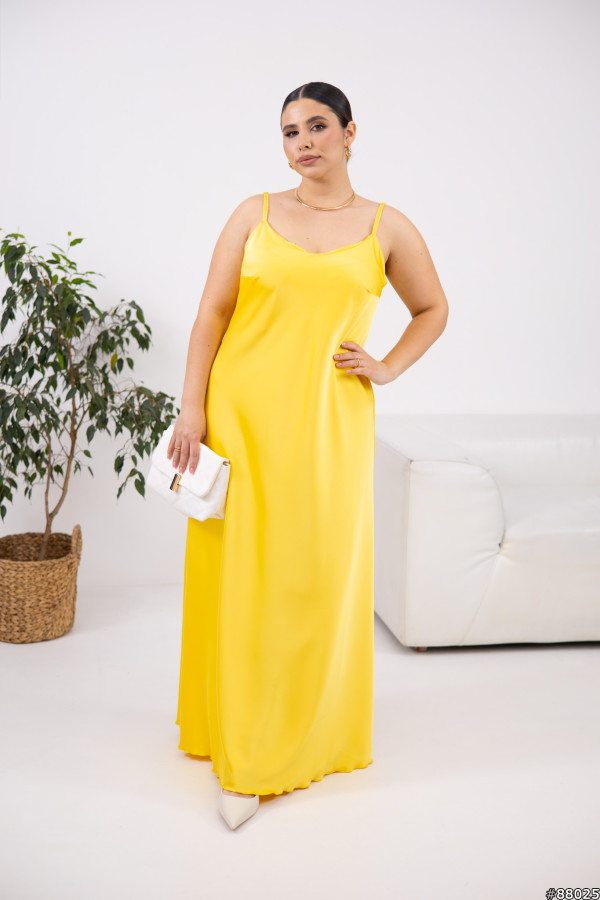 Сукня Атлас колір: Жовтий Тканина не тягнеться. Шлейки регулюються, завдяки їм можна регулювати довжину.Заміри готового виробу розмір 48-50: