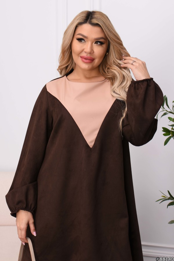 Сукня Замша колір: Шоколад Заміри готового виробу розмір 48-50: