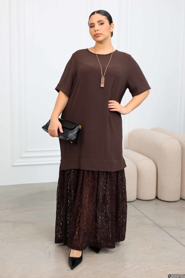 Сукня Гіпюр+креп колір: Шоколад Тканина- гіпюр і американський креп основа.Заміри готового виробу розмір 50-52: