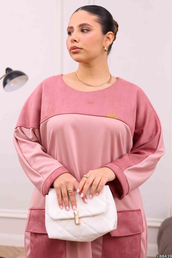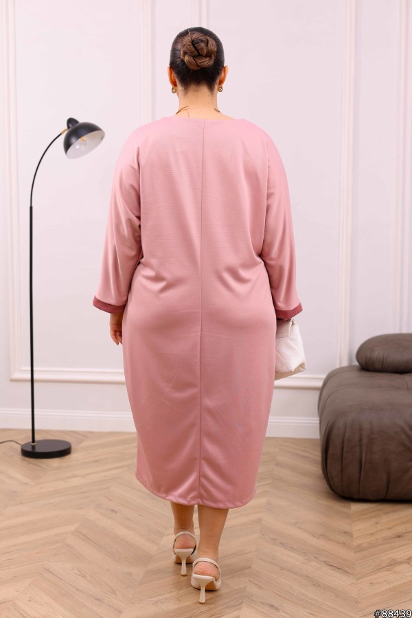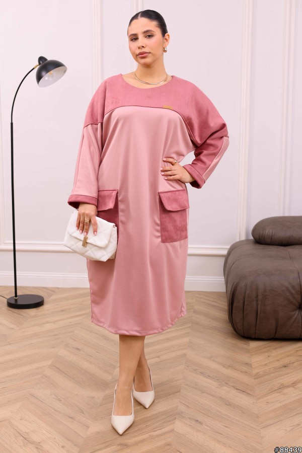 Сукня Трикотаж+замша колір: Пудра Заміри готового виробу розмір 50-52: