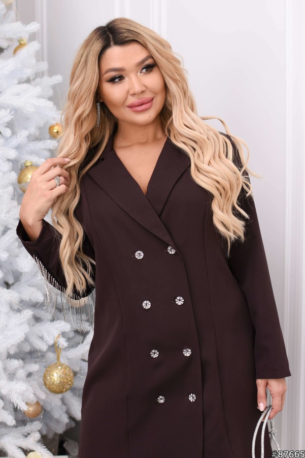 Сукняжакет Креп костюмна тканина колір: Шоколад Сукня декорована камінням зі стразами на тесьмі